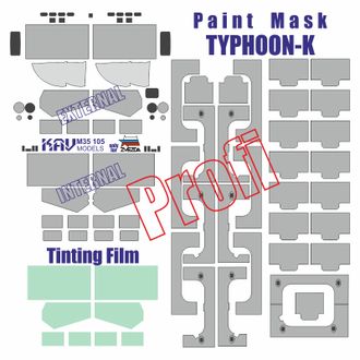 Окрасочная маска для модели Тайфун-К производства Звезда. Маска для окраски остекления кабины внутренняя и внешняя, трафареты для окраски внутренних элементов. + Тонировочная пленка