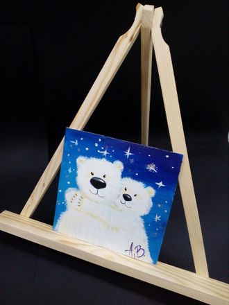 Мольберт настольный складной, сосна. Высота - 44см, длина планки-подставки для холста - 44см.