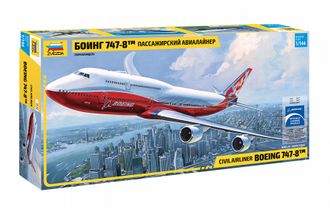Длина фюзеляжа 747-8 составляет 76,3 метра, так что его можно вообще считать самым длинным из существующих коммерческих авиалайнеров. Кроме того, он самый тихий и экономичный из всех самолетов семейства.