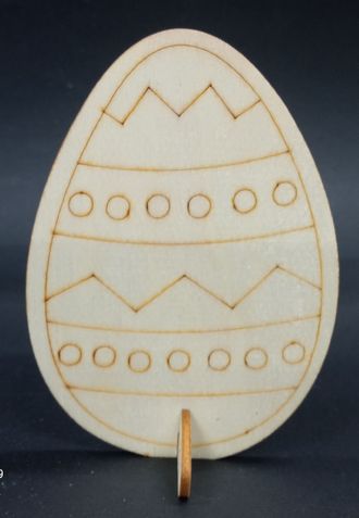 Яйцо из фанера на круглой подставке с нанесенном рисунком, высота 12см
