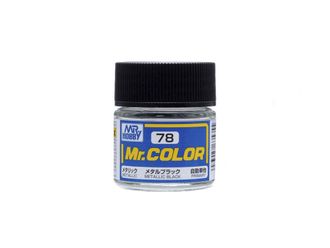 C78 Mr.Hobby Краска акриловая на растворителе, Металлический Чёрный металлик, 10 мл.