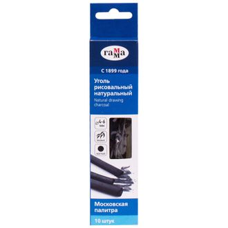 Уголь натуральный Гамма "Московская палитра", ивовый, круглый, Ø 4-6мм, 10шт., картон. упаковка, европодвес